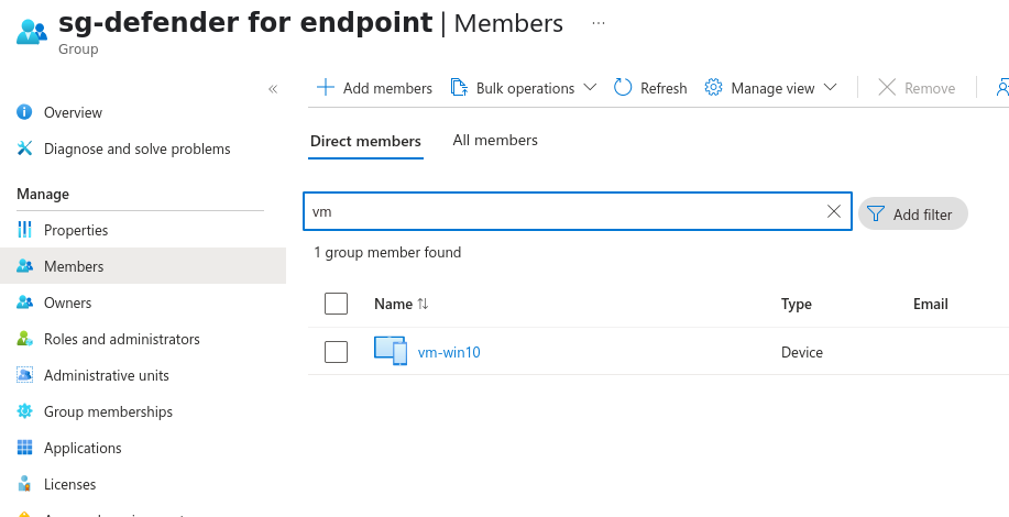 Vamos para nossa segunda parte sobre o setup inicial do Defender for Endpoint com INTUNE. Hoje nós vamos fazer o onboarding da um computador que esta ingressado no nosso dominio do Microsoft Entra ID. Como podemos ver nas imagens a seguir, nosso ambiente é cloud native, nós temos um grupo com um computador de membro e a página de devices vazia no portal do Defender.